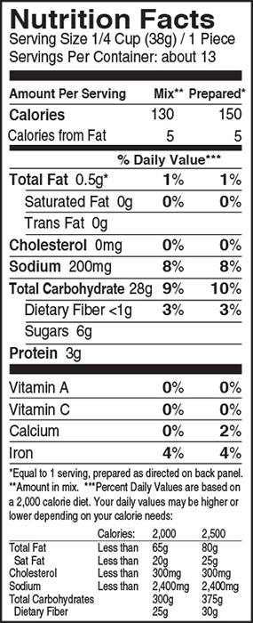 Add 2 tsp. cinnamon to the dry mix. Prepare batter as instructed on back panel. Gently fold ½ - ¾ cups of ONE of the following into batter: raisins, dried cranberries, chopped walnuts, or fresh or frozen blueberries (fully thawed and drained). Do not over mix.